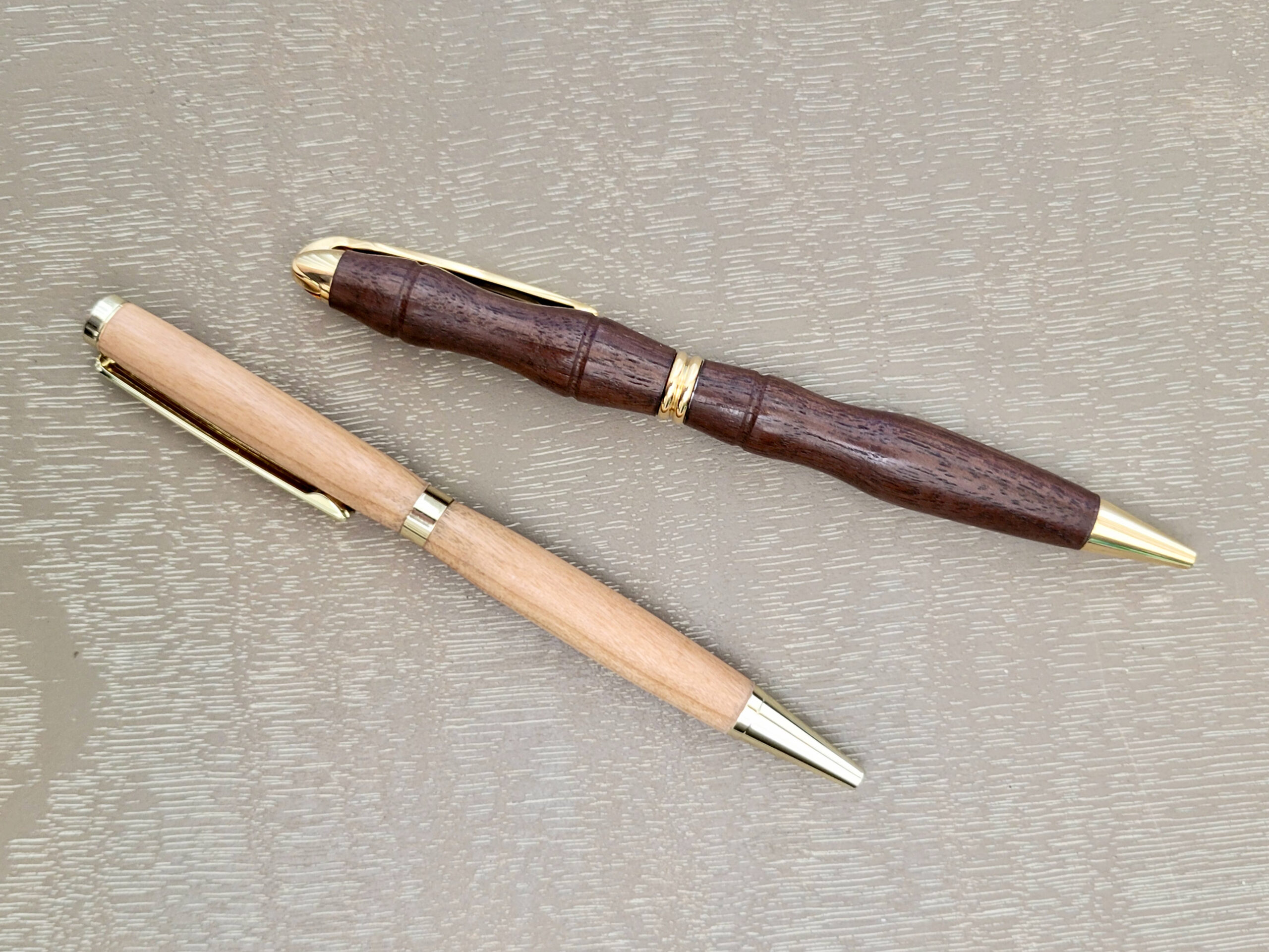 Learn how to use the lathe to turn beautiful wooden pens! In this class, you will learn the basics of pen turning, how to turn safely at the lathe, and then assemble your pen with metal pen kit components. Learn how to use the lathe to turn beautiful wooden pens! In this class, you will learn the basics of pen turning, how to turn safely at the lathe, and then assemble your pen with metal pen kit components. This is a great starter project to familiarize yourself with the lathe and try using traditional turning tools. There will be a $20 materials fee payable to the instructor at the first class meeting. You will leave the class with 2 fully finished pens, ready for gifting or signing important documents.